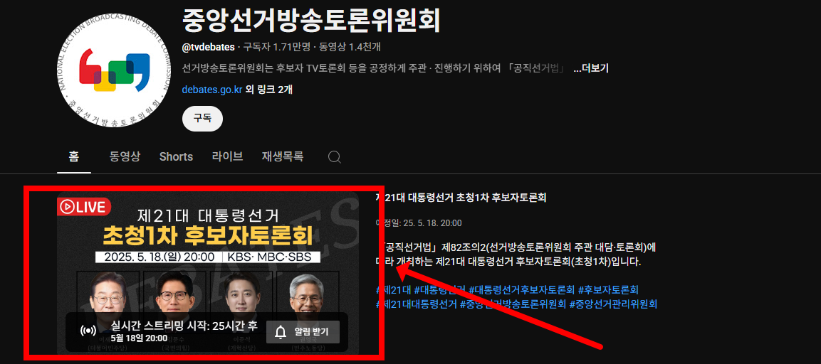 - 유튜브: 중앙선거방송토론위원회 공식 채널에서 실시간 방송